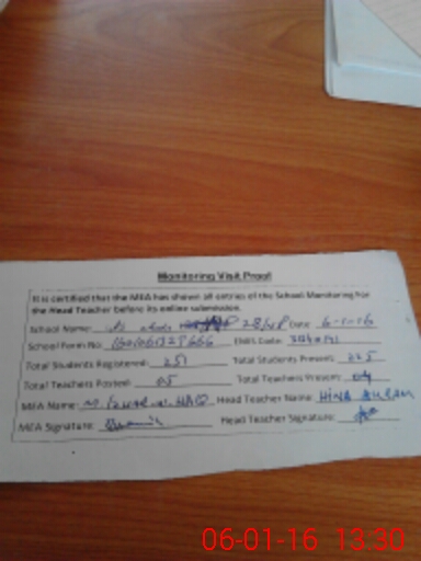 | Certified that this School was Inspected by the Undersigned MEA/DMO Today and the Information Stated Above is as Per Record. | |||||