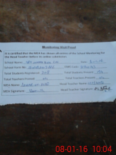 | Attendance Register | Head Teacher | MEA with School | Visit Proof |
