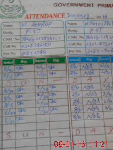 | CNIC | Full Name | Designation | R/C | Absence During Last Calender Month |