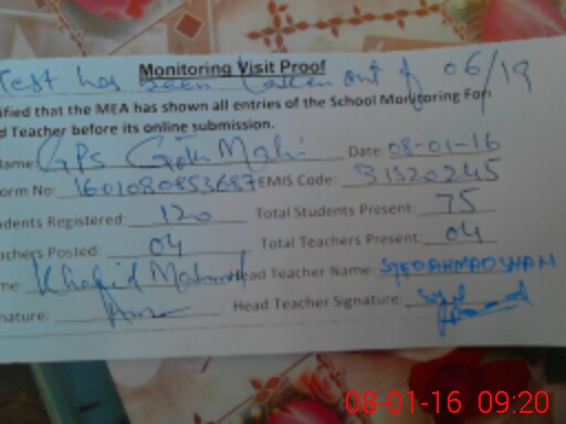 | Certified that this School was Inspected by the Undersigned MEA/DMO Today and the Information Stated Above is as Per Record. | |||||