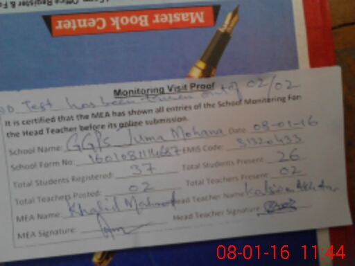 | EMIS Code: 31320433 | Name of School: GGPS JUMA MOHANA | |||
