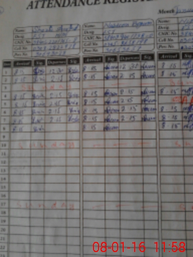 | CNIC | Full Name | Designation | R/C | Absence During Last Calender Month |
