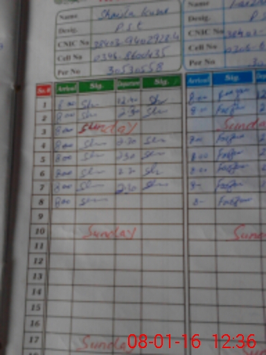 | CNIC | Full Name | Designation | R/C | Absence During Last Calender Month |