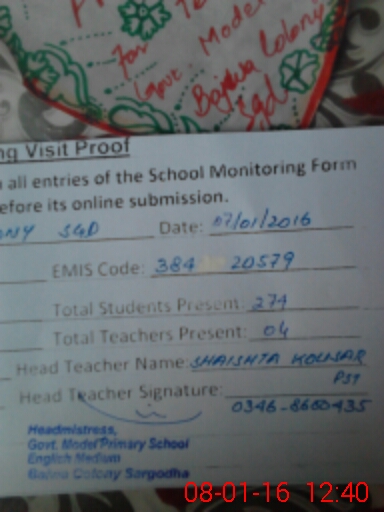 | EMIS Code: 38420579 | Name of School: GGPS BAJWA COLONY | |||