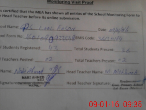 | Certified that this School was Inspected by the Undersigned MEA/DMO Today and the Information Stated Above is as Per Record. | |||||