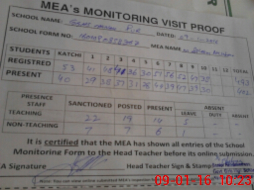 | Attendance Register | Head Teacher | MEA with School | Visit Proof |