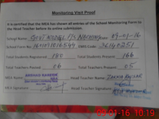 | Certified that this School was Inspected by the Undersigned MEA/DMO Today and the Information Stated Above is as Per Record. | |||||