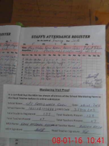 | Attendance Register | Head Teacher | MEA with School | Visit Proof |