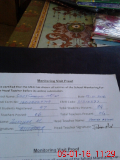 | Attendance Register | Head Teacher | MEA with School | Visit Proof |