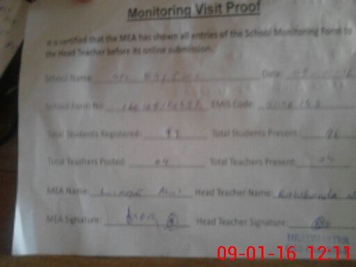| Attendance Register | Head Teacher | MEA with School | Visit Proof |