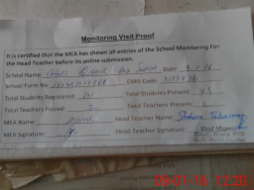 | EMIS Code: 31330767 | Name of School: GGPS QADAR BUX SUPPLAN | |||