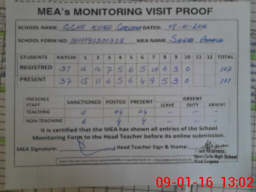 | EMIS Code: 36410121 | Name of School: GGHSS KUND SARGANA, SARAI SIDHU | |||