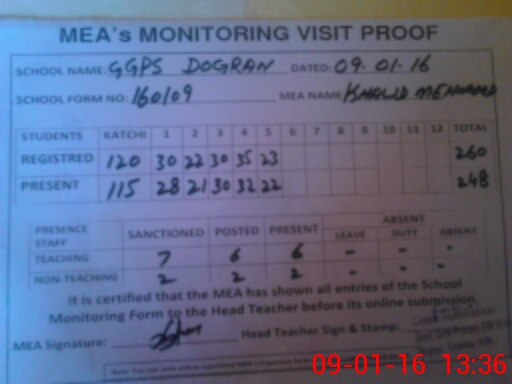 | Certified that this School was Inspected by the Undersigned MEA/DMO Today and the Information Stated Above is as Per Record. | |||||