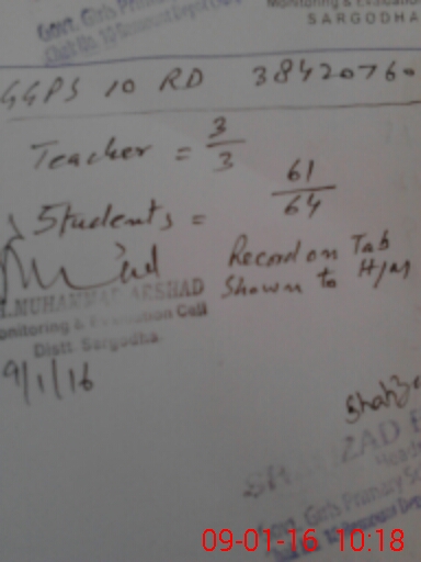 | EMIS Code: 38420760 | Name of School: GGPS NO.4 CHAK NO.10 REMOUNT DEPOT SARGODHA | |||