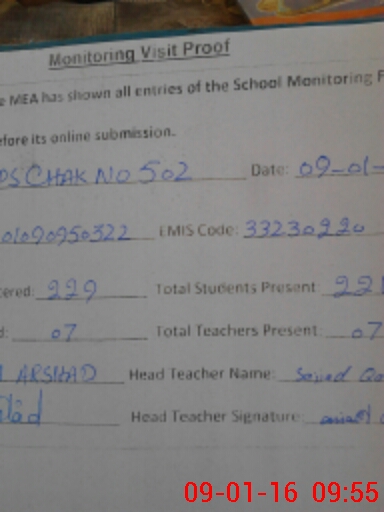 | EMIS Code: 33230220 | Name of School: GPS CHAK NO 502 JB | |||