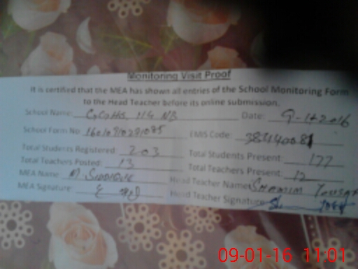 | Certified that this School was Inspected by the Undersigned MEA/DMO Today and the Information Stated Above is as Per Record. | |||||