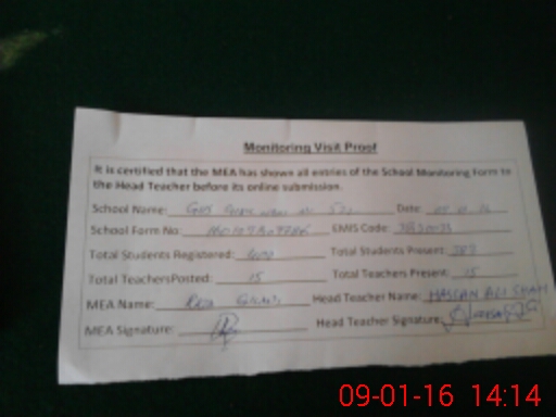 | Certified that this School was Inspected by the Undersigned MEA/DMO Today and the Information Stated Above is as Per Record. | |||||