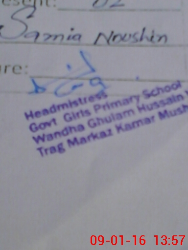 | Name: Sa**** BiBi Designation: (School Headmaster's/Headmistress's) ESE Sc Math Phone/Cell Number: 03**** |