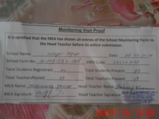 | Certified that this School was Inspected by the Undersigned MEA/DMO Today and the Information Stated Above is as Per Record. | |||||