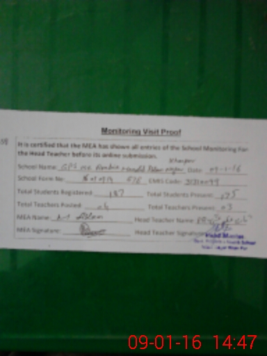 | Remarks (Use Separate Page if Required): The school is not own govt building DTE two MVF are available in the school on 19 December 15 whereas same date not visited the school by DTE | |||||
