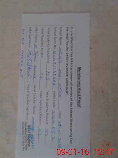 | Attendance Register | Head Teacher | MEA with School | Visit Proof |