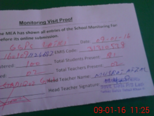 | Certified that this School was Inspected by the Undersigned MEA/DMO Today and the Information Stated Above is as Per Record. | |||||