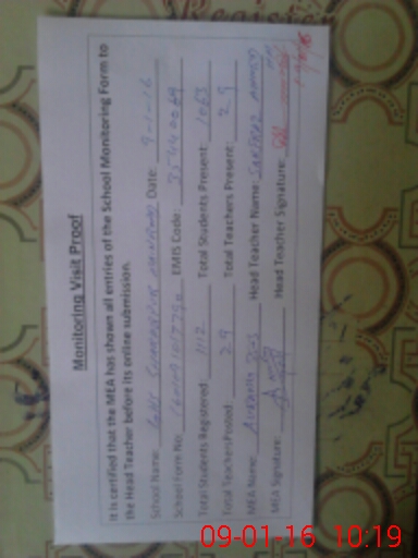 | Certified that this School was Inspected by the Undersigned MEA/DMO Today and the Information Stated Above is as Per Record. | |||||