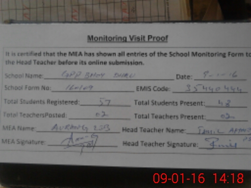 | EMIS Code: 35440444 | Name of School: GPS BHOY DHKU | |||