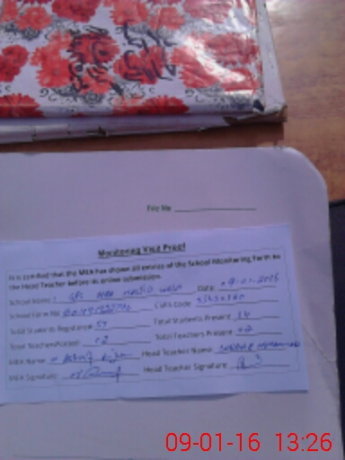 | Attendance Register | Head Teacher | MEA with School | Visit Proof |