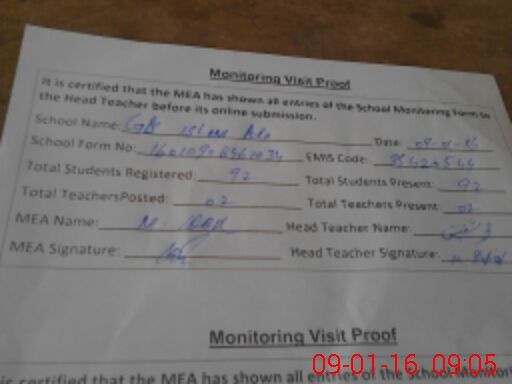 | Certified that this School was Inspected by the Undersigned MEA/DMO Today and the Information Stated Above is as Per Record. | |||||