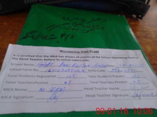 | Attendance Register | Head Teacher | MEA with School | Visit Proof |