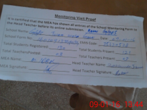| Certified that this School was Inspected by the Undersigned MEA/DMO Today and the Information Stated Above is as Per Record. | |||||