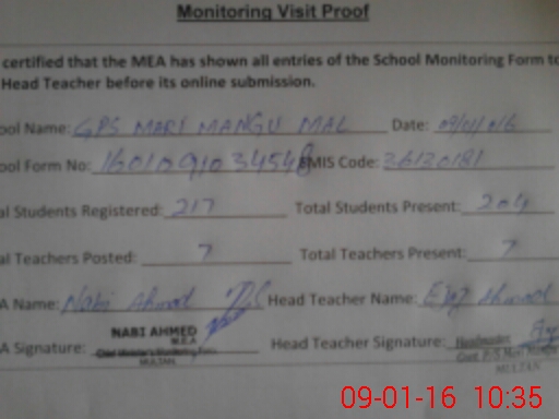 | EMIS Code: 36130181 | Name of School: GPS MARI MANGU MAL BANGAL WALA MULTAN | |||