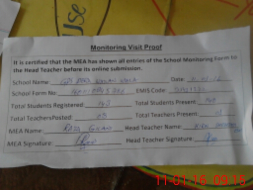 | Certified that this School was Inspected by the Undersigned MEA/DMO Today and the Information Stated Above is as Per Record. | |||||