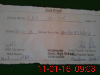 | Attendance Register | Head Teacher | MEA with School | Visit Proof |
