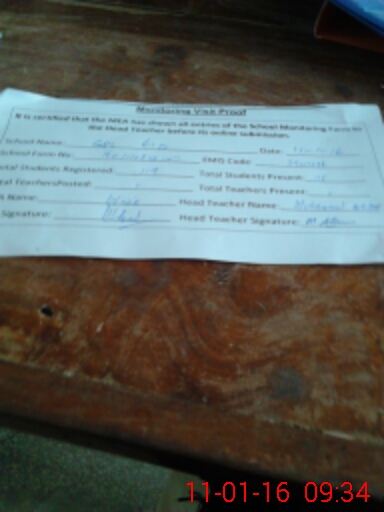 | Attendance Register | Head Teacher | MEA with School | Visit Proof |