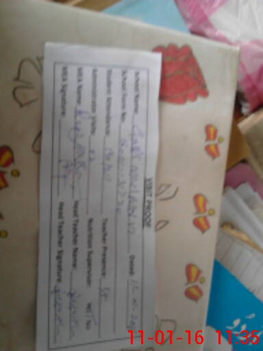 | Attendance Register | Head Teacher | MEA with School | Visit Proof |