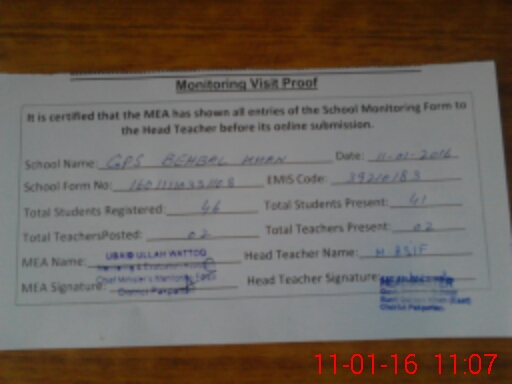 | Certified that this School was Inspected by the Undersigned MEA/DMO Today and the Information Stated Above is as Per Record. | |||||