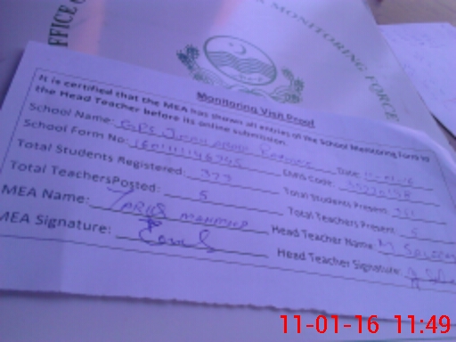 | Certified that this School was Inspected by the Undersigned MEA/DMO Today and the Information Stated Above is as Per Record. | |||||