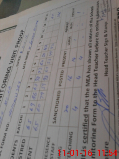 | Attendance Register | Head Teacher | MEA with School | Visit Proof |