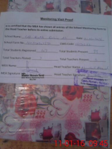 | Certified that this School was Inspected by the Undersigned MEA/DMO Today and the Information Stated Above is as Per Record. | |||||