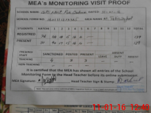 | Certified that this School was Inspected by the Undersigned MEA/DMO Today and the Information Stated Above is as Per Record. | |||||