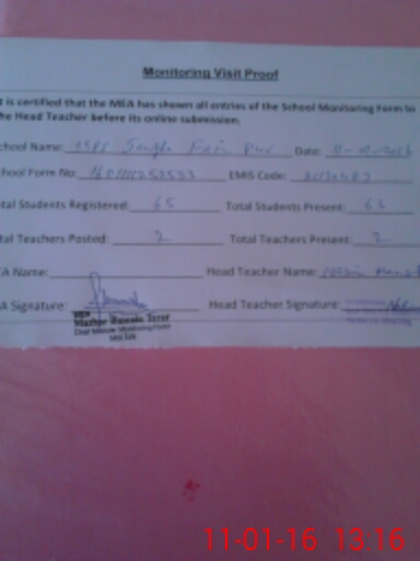 | Remarks (Use Separate Page if Required): School building is under construction but work stopped since long and this school is running in GGPS Basti Bhir moreover a case regarding dispute for ownership of school land is also under progress in court as per statment of Head Teacher | |||||