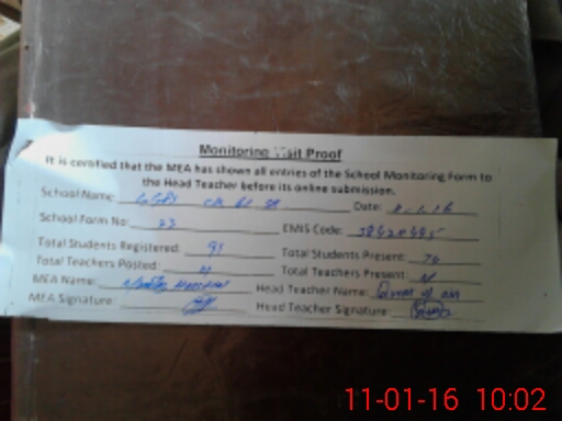 | Certified that this School was Inspected by the Undersigned MEA/DMO Today and the Information Stated Above is as Per Record. | |||||