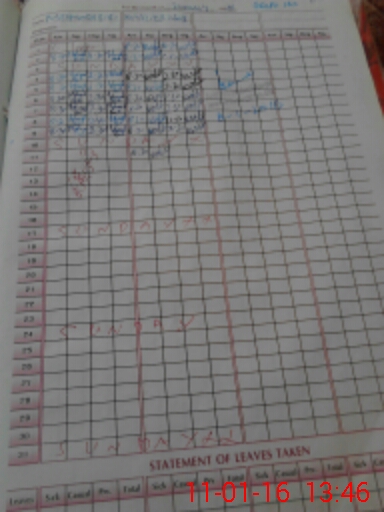 | CNIC | Full Name | Designation | R/C | Absence During Last Calender Month |