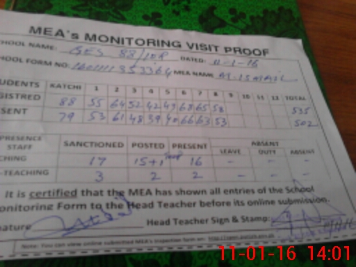 | Attendance Register | Head Teacher | MEA with School | Visit Proof |
