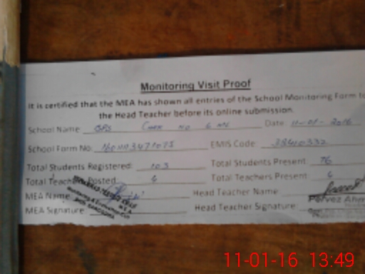 | Certified that this School was Inspected by the Undersigned MEA/DMO Today and the Information Stated Above is as Per Record. | |||||