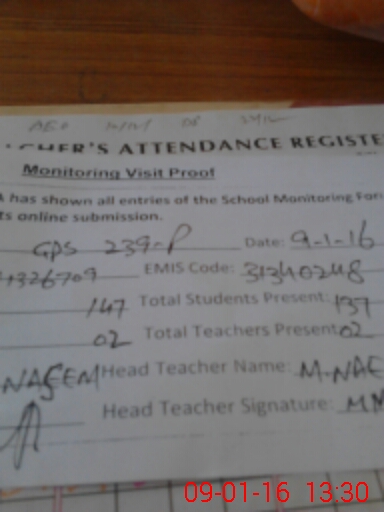 | Attendance Register | Head Teacher | MEA with School | Visit Proof |