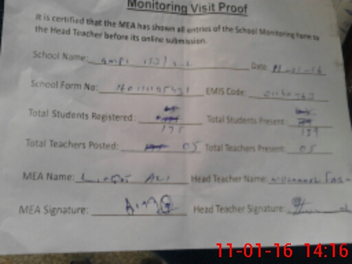 | Attendance Register | Head Teacher | MEA with School | Visit Proof |
