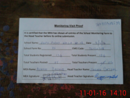 | Attendance Register | Head Teacher | MEA with School | Visit Proof |